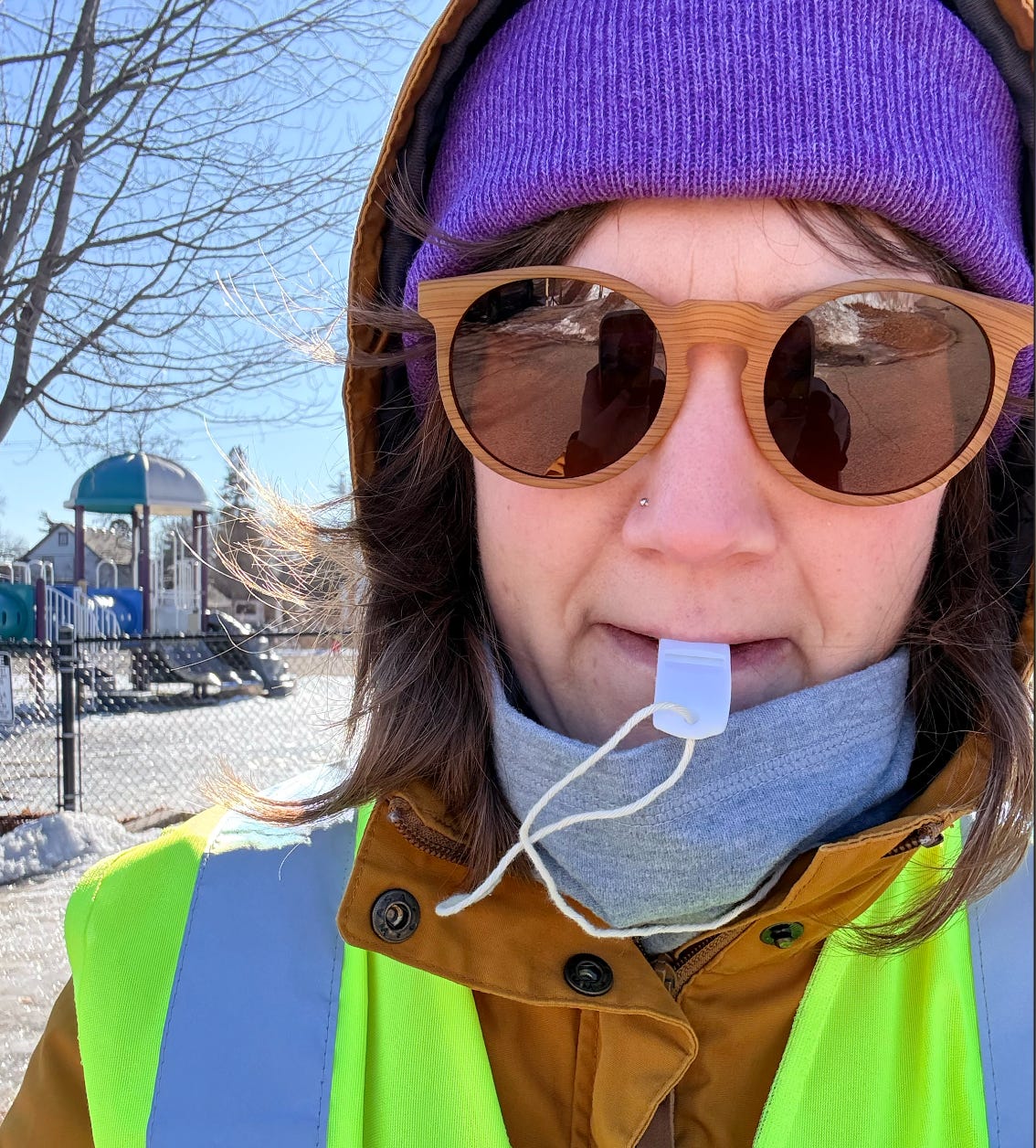 She told me about driving home through Minneapolis at night and seeing parents dotted across intersections — bundled up, wearing reflective vests, holding whistles. Not chanting. Not protesting. Just standing there, visible, so families knew someone was watching out.